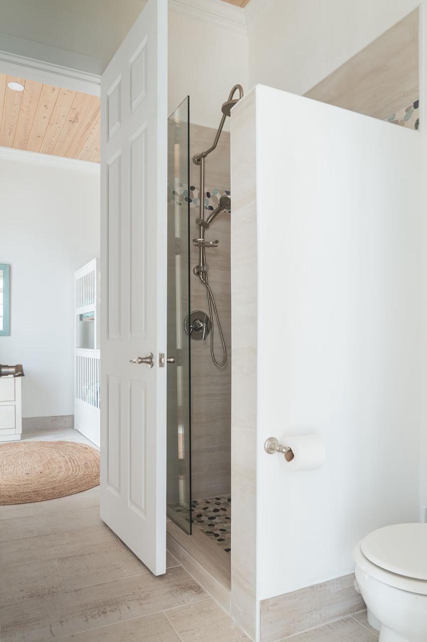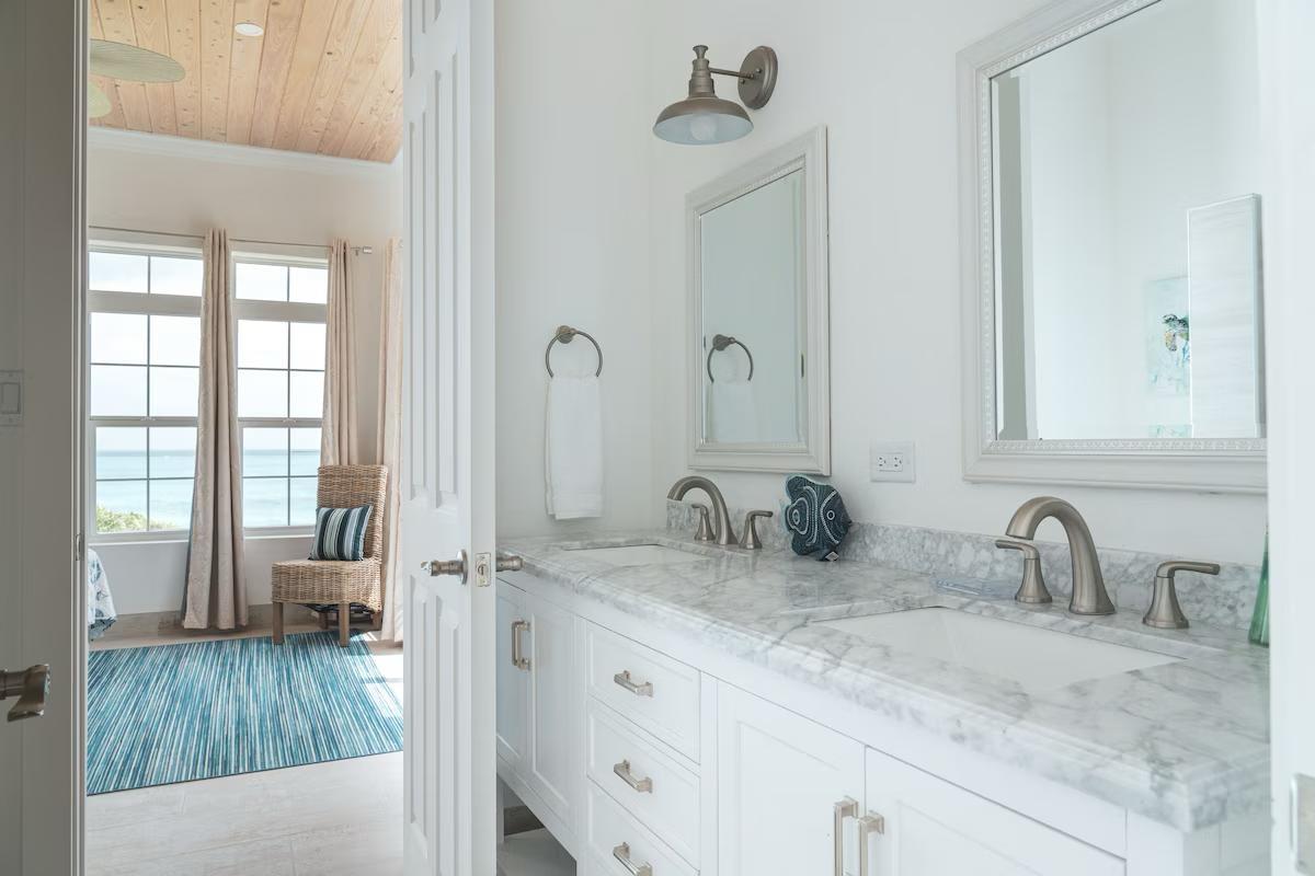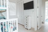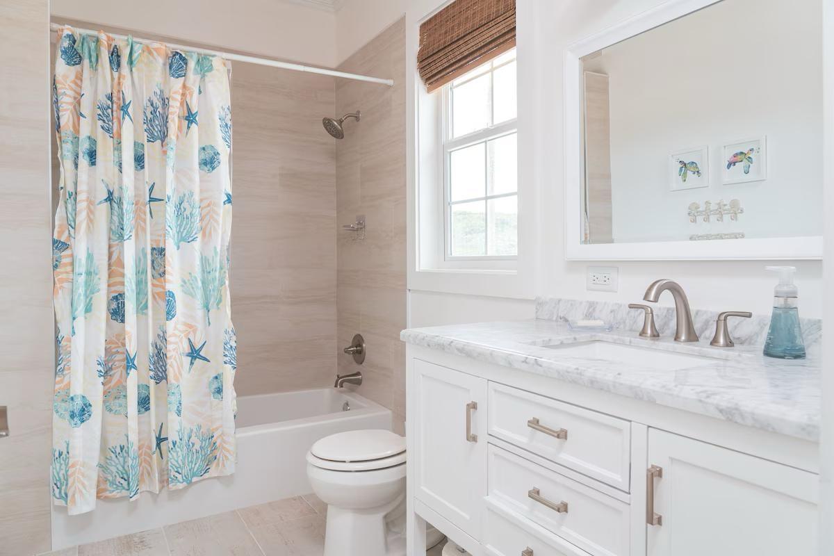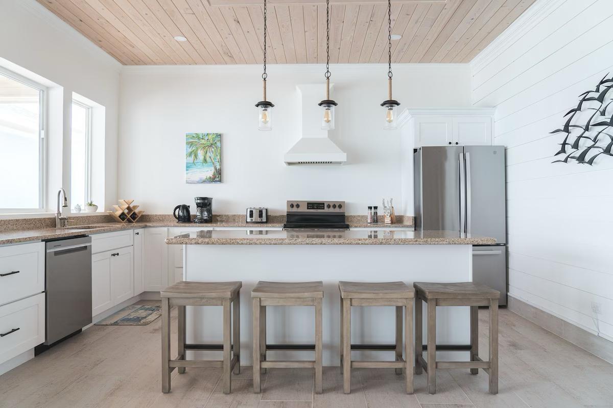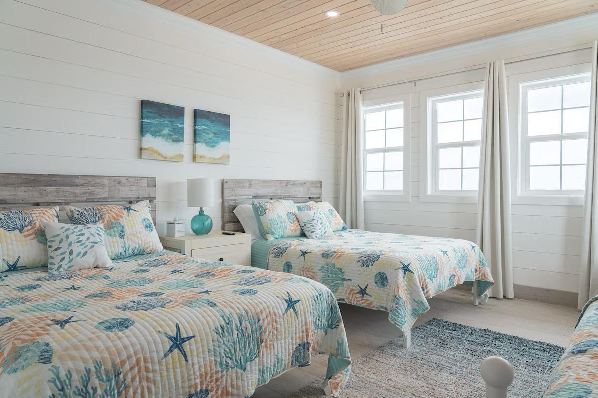 Positioned on a 20,000sqft lot with 98 feet of frontage on a powdery white sand beachfront, Treasure Cove Beach House is certainly a treasure in paradise. This 3500sqft 6 bedroom 5 bathroom luxurious home is nestled in the community of Farmer’s Hill in Great Exuma with privacy, all the amenities one could require and great snorkeling at its doorstep. The home is a short 10 minute drive from the Exuma International Airport which is currently undergoing extensive construction work to expand its ability to accommodate international arrivals. The home is designed with large families, elegance, comfort and enjoying the island in mind, and as you enter this becomes immediately evident. An open layout with high tongue-and-groove ceilings that holds a fully equipped kitchen with a large bi-fold window opening directly onto the pool deck, a 1,150sqft patio perched just above the Exuma Blues, a large heated infinity edged pool, hot tub, lounge seating and breathtaking views all make for the perfect island oasis. This home offers the perfect blend of indoor and outdoor entertainment, whether