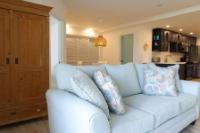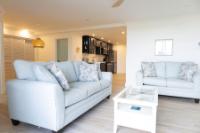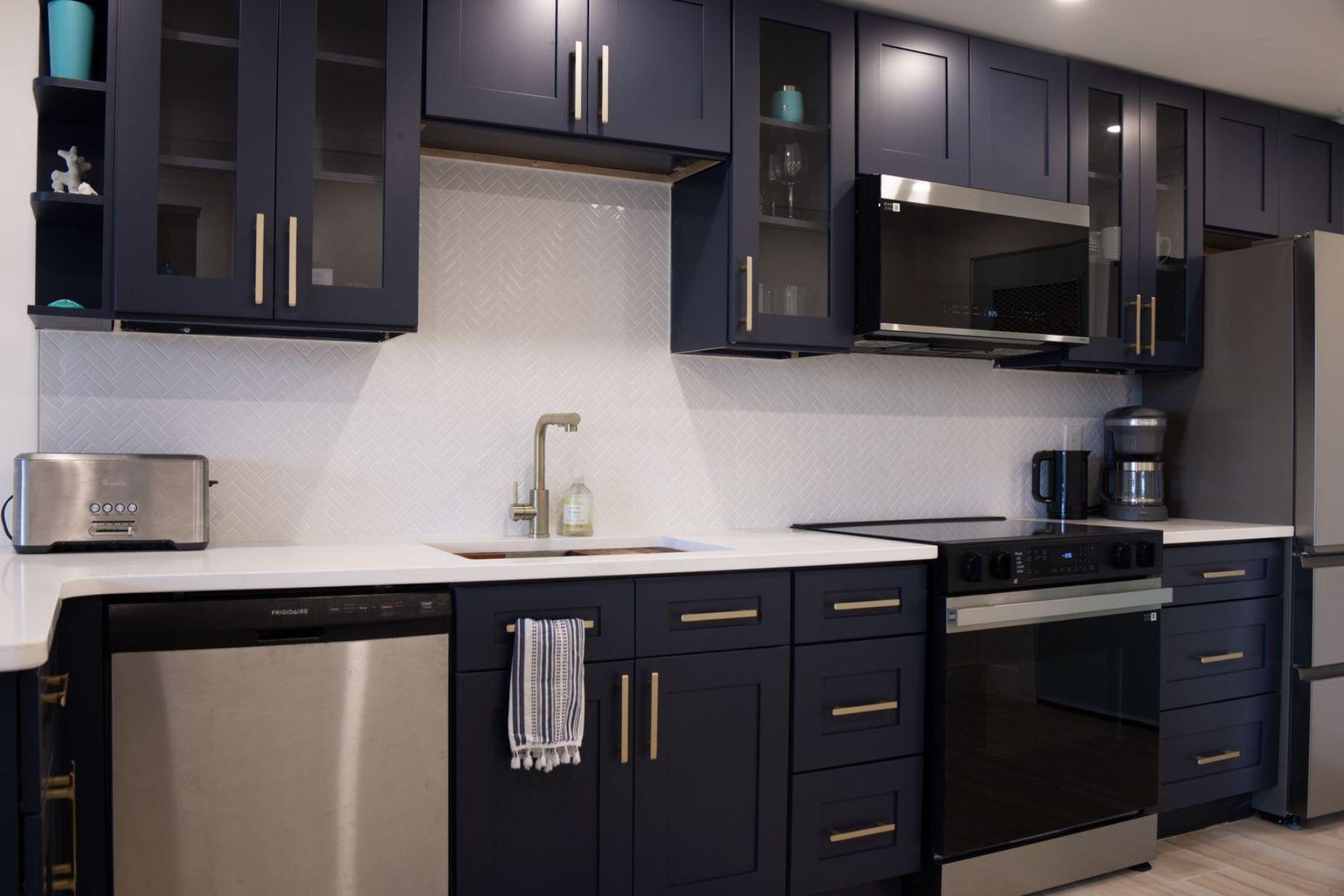 Welcome to this stylish and thoughtfully designed 2-bedroom, 1-bathroom condo, offering comfort, functionality, and modern finishes throughout. The home features a stunning custom blue shaker kitchen complete with stainless steel smart-technology appliances, including a refrigerator, stove, microwave, dishwasher, and quartz countertops. The open and inviting layout is enhanced by durable tile flooring throughout and high-efficiency central air conditioning. The unit comes fully furnished, featuring a spacious king bed in the primary bedroom and a twin-over-double bunk bed in the second bedroom, making it ideal for families, guests, or rental potential. Additional highlights include a convenient washer/dryer hookup, ample storage space, and a private outdoor porch — perfect for relaxing or enjoying outdoor living. Move-in ready and beautifully appointed, this condo combines modern convenience with comfortable coastal-style living.