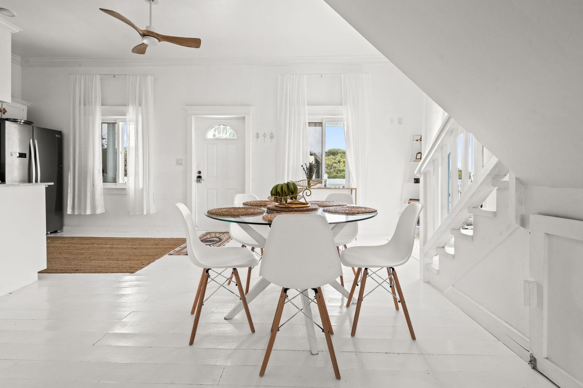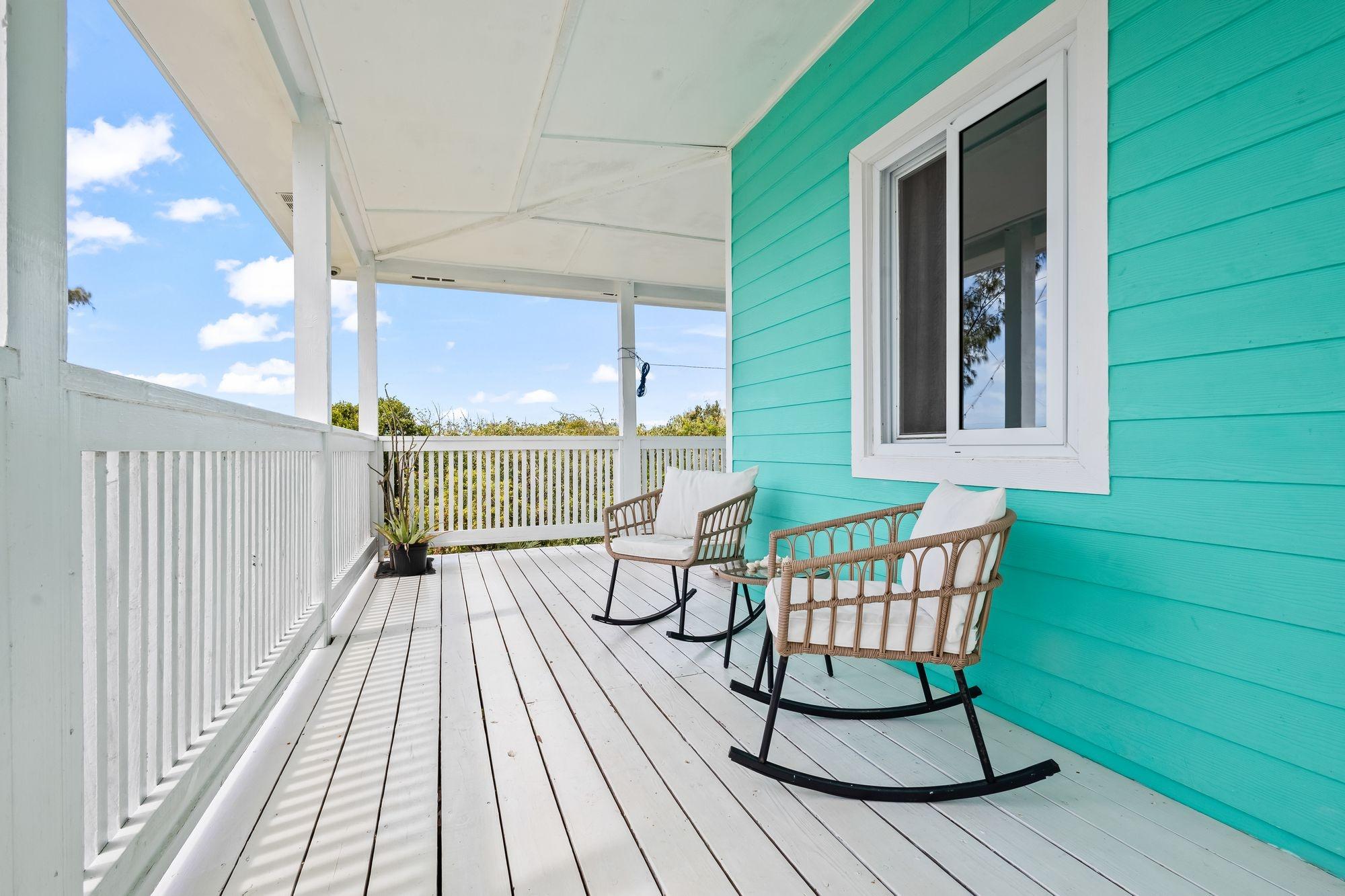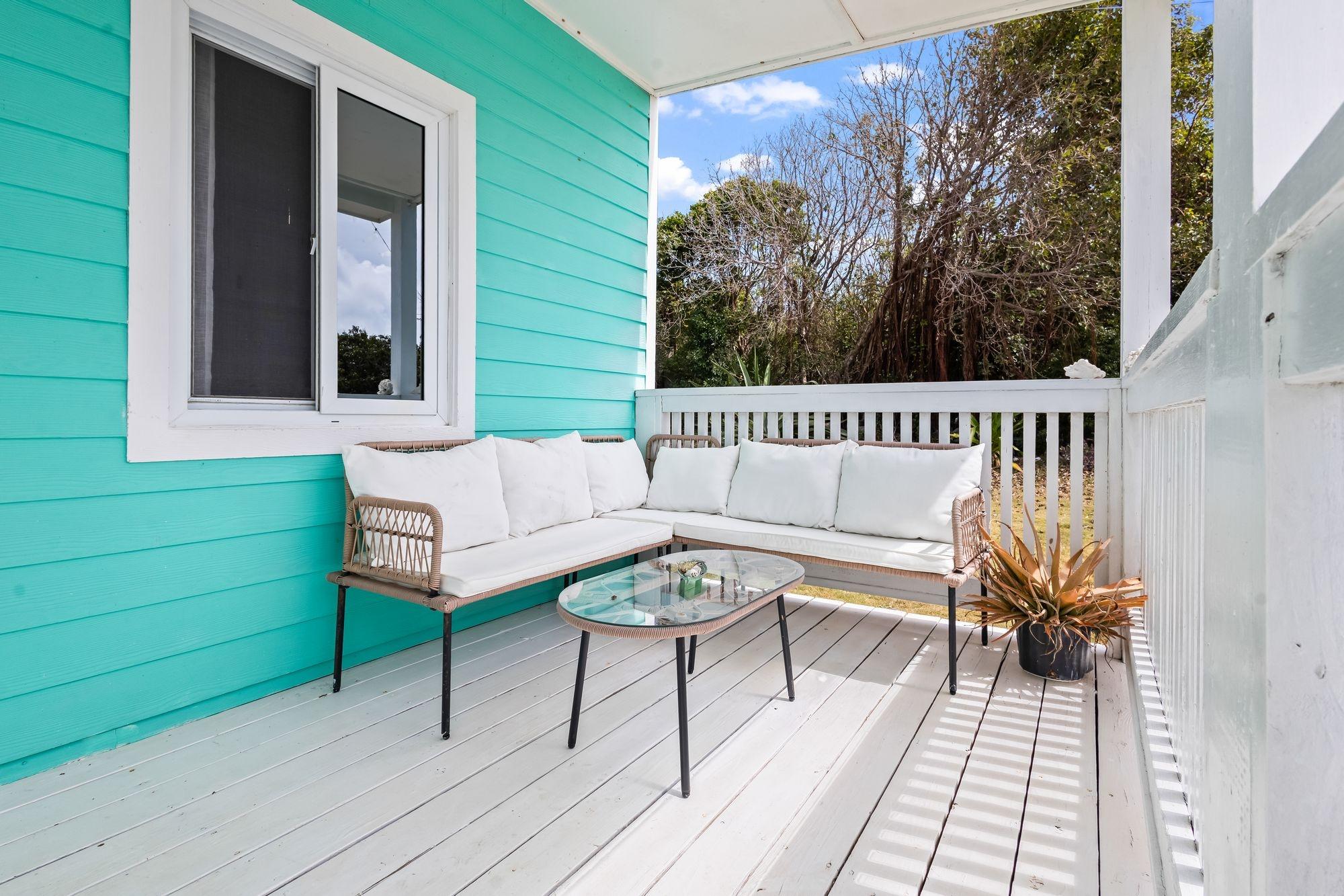 Located in the desirable community of Rainbow Bay, Eleuthera, this beautifully furnished 3-bedroom, 2-bathroom oceanview home offers relaxed island living in a peaceful, elevated setting. Positioned on Rainbow Hill Circle, the property enjoys cooling breezes and scenic ocean views, just a five-minute walk from Rainbow Bay Beach. The home features an open living and dining area, a well-appointed kitchen with custom wood cabinetry and marble countertops, and comfortable accommodations for family or guests. Sliding doors lead to a spacious covered veranda, offering approximately 500 sq. ft. of additional outdoor living space—perfect for relaxing or entertaining while enjoying the views. Conveniently located approximately 20 minutes from Governor's Harbour and Gregory Town, this property is ideal as a full-time residence, vacation home, or investment opportunity.