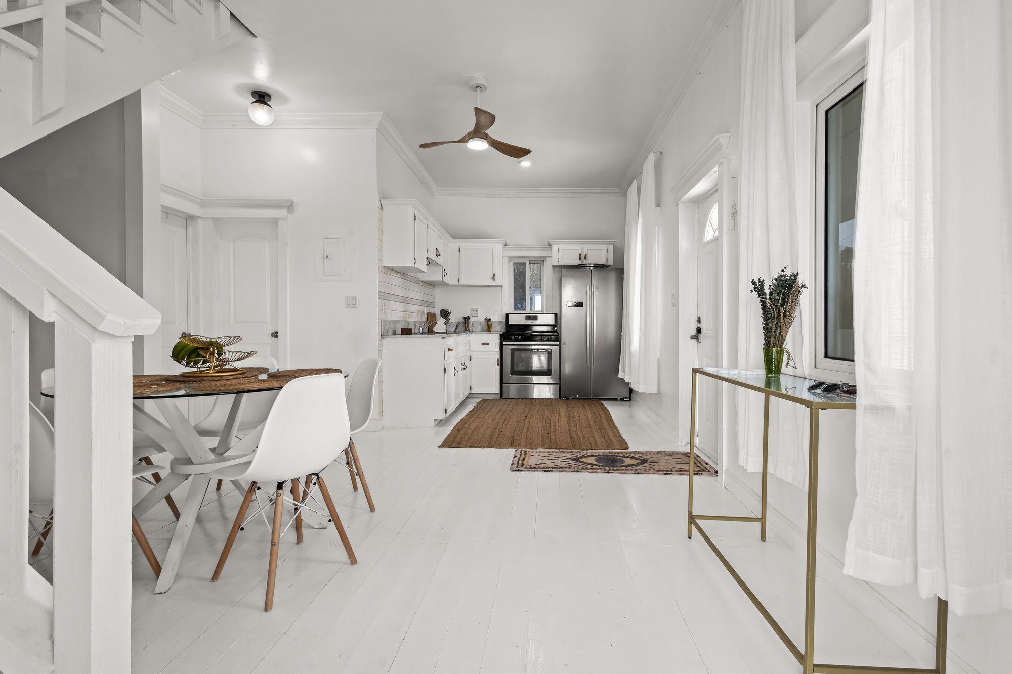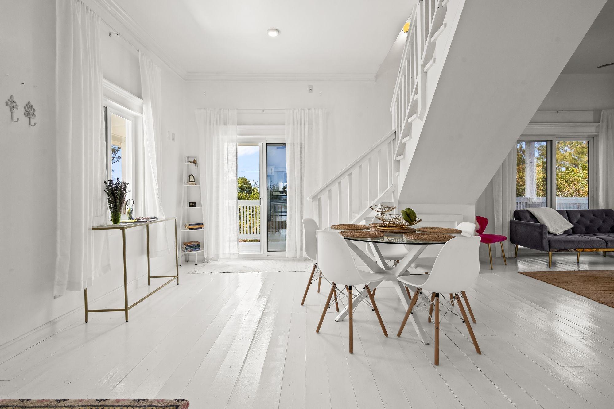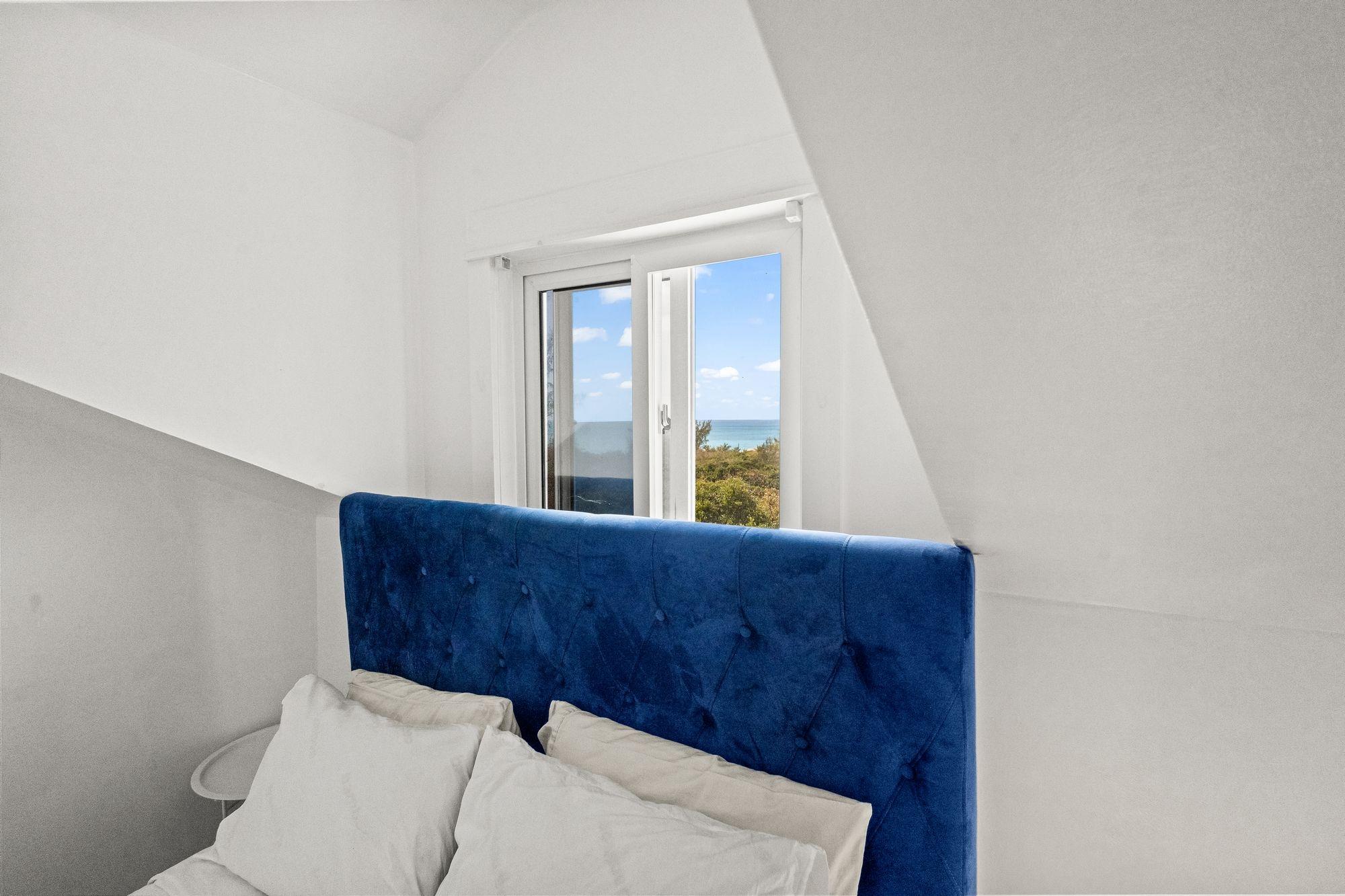 Located in the desirable community of Rainbow Bay, Eleuthera, this beautifully furnished 3-bedroom, 2-bathroom oceanview home offers relaxed island living in a peaceful, elevated setting. Positioned on Rainbow Hill Circle, the property enjoys cooling breezes and scenic ocean views, just a five-minute walk from Rainbow Bay Beach. The home features an open living and dining area, a well-appointed kitchen with custom wood cabinetry and marble countertops, and comfortable accommodations for family or guests. Sliding doors lead to a spacious covered veranda, offering approximately 500 sq. ft. of additional outdoor living space—perfect for relaxing or entertaining while enjoying the views. Conveniently located approximately 20 minutes from Governor's Harbour and Gregory Town, this property is ideal as a full-time residence, vacation home, or investment opportunity.