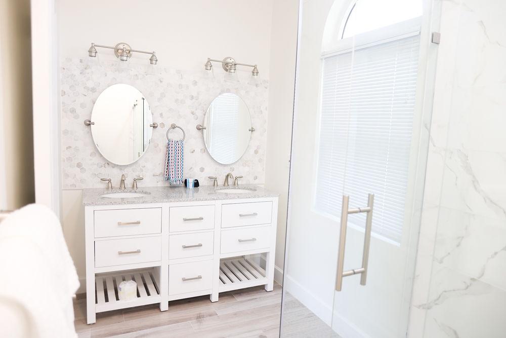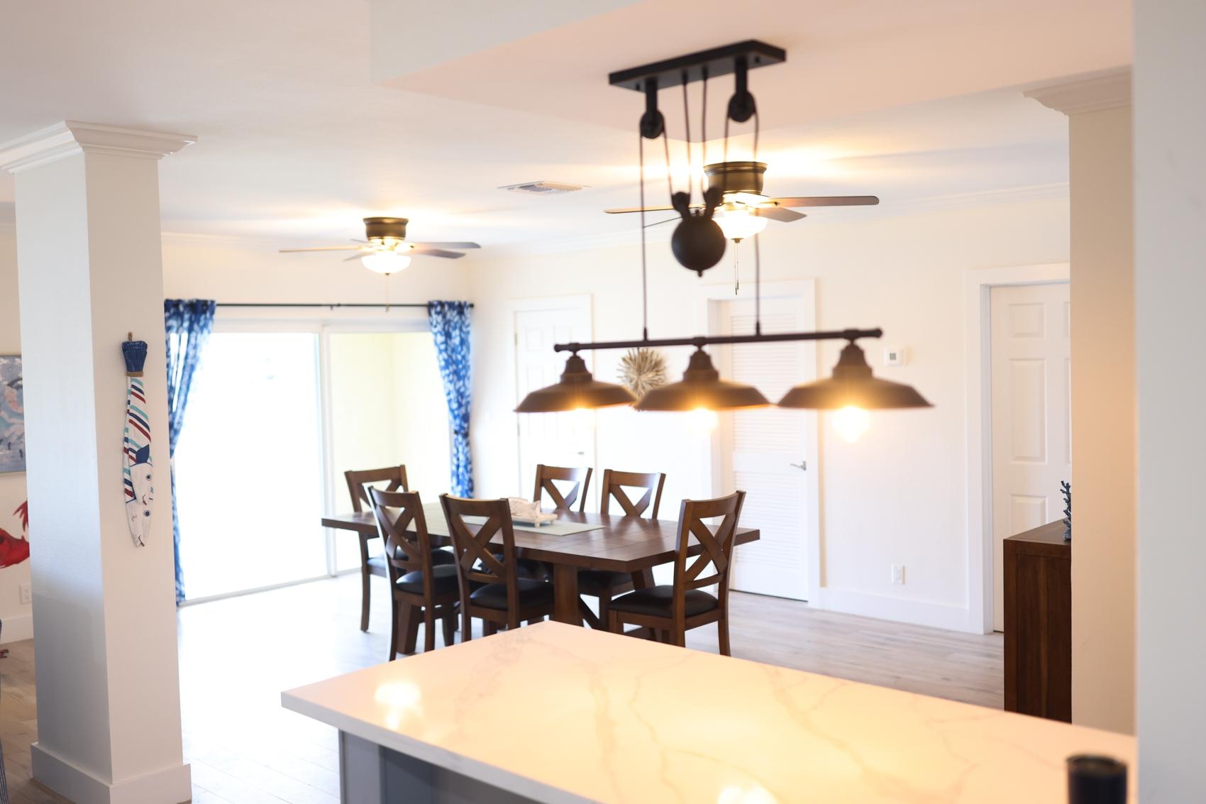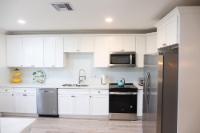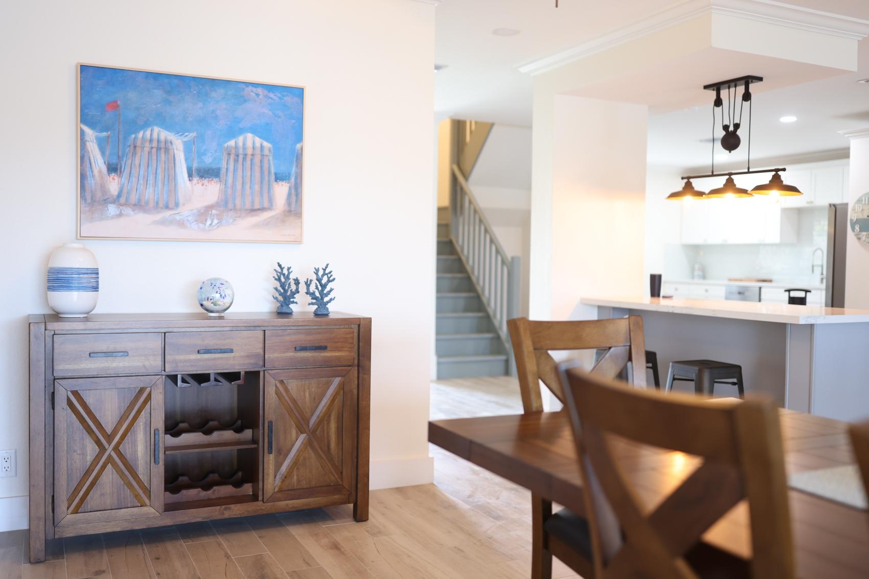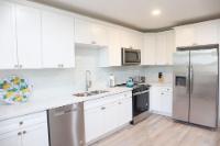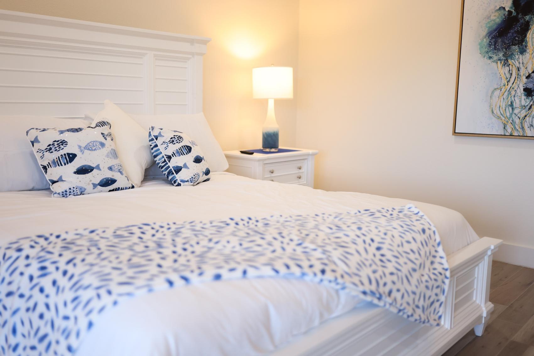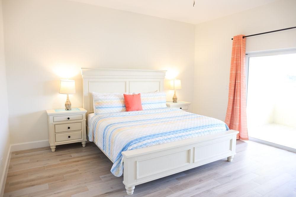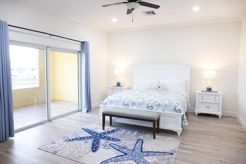 The Exuma Villa is 3 bedroom 3.5 bath villa overlooking the marina at Villa Marina Cove. Centrally located on Midshipman Road it is conveniently located between Taino Beach and Port Lucaya. The 3 bedrooms are elegantly furnished with king beds and premium linens with ensuite luxury bathrooms. The living room features an 85-inch TV and the bedrooms are equipped with 55-inch smart TV’s. 1 bedroom is located on the ground level with the gourmet kitchen, large dining area and living area with patio doors leading to an outdoor patio and the marina. There is also a half bath and full-size washer and dryer located on the ground level. Upstairs features a large master suite equipped with ensuite bathroom with glass shower stall, double vanity, and soaker tub. It also has its own private terrace. The 2nd upstairs bedroom has a king size bed, desk and ensuite bath. Covered parking and an outdoor pool are included and the entire property is secured and gated.