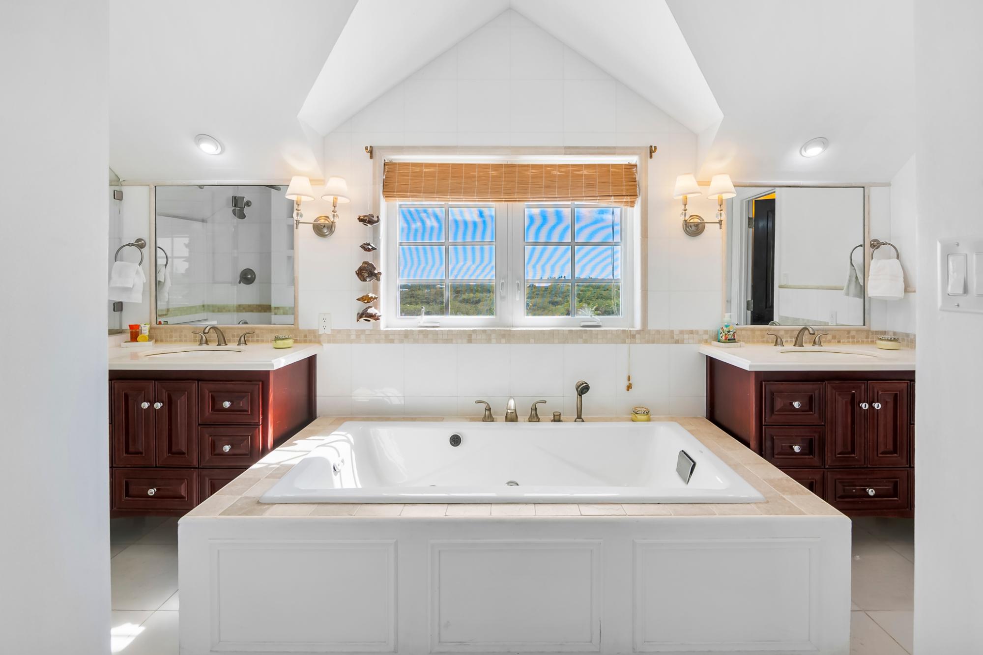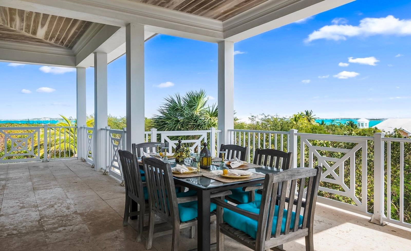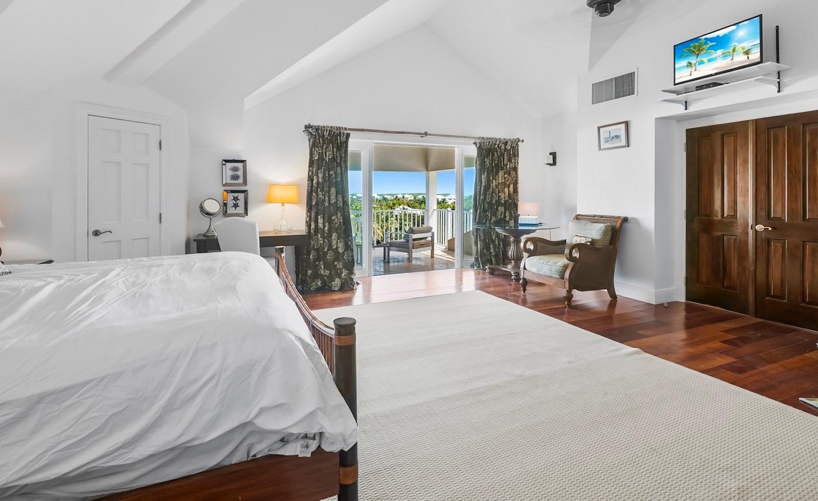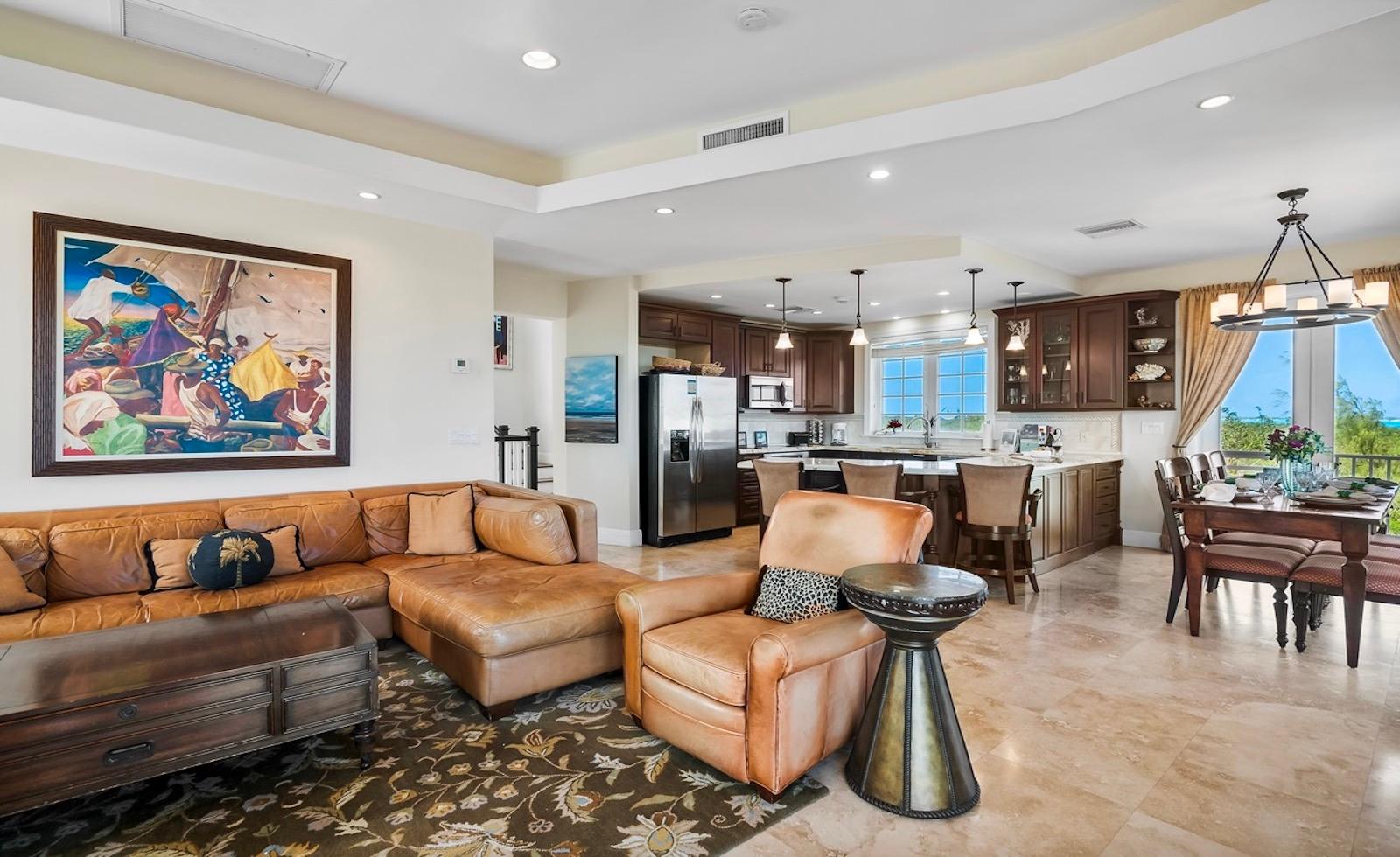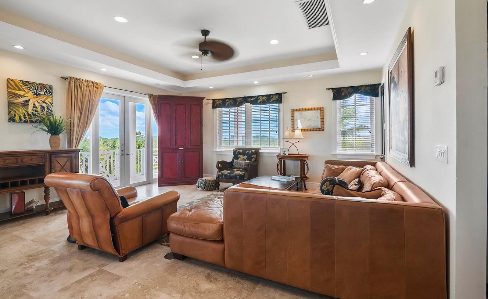 Within the exclusive gated community of February Point, this desirable residence combines elegant island living with an unbeatable investment opportunity. Perfectly positioned on 0.33 acres of lush landscape, offering complete privacy, the estate has breathtaking panoramas over the brilliant turquoise waters of Elizabeth Harbour. Professionally designed and fully furnished interiors, complete upscale finishes, span nearly 3,000 sq ft across three levels. Tray ceilings and elegant lighting complement the living room; a chef’s kitchen boasts modern appliances and a breakfast bar; a powder room on the main level; and 1,800 sq ft of covered balconies capture constant ocean breezes. Three ensuite bedrooms include the primary retreat, featuring a Jacuzzi soaking tub, walk-in shower, and separate his-and-hers vanities and closets. A guest cottage provides comfortable accommodations, while a plunge pool and covered dining terrace create a relaxed outdoor setting, and cascading bougainvillea lead toward the shoreline and beyond to a sandy beach and volleyball court with deeded park access