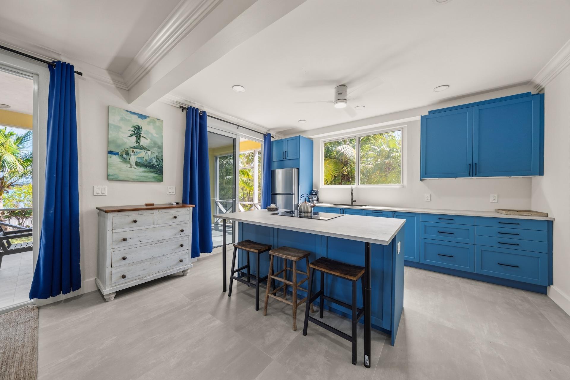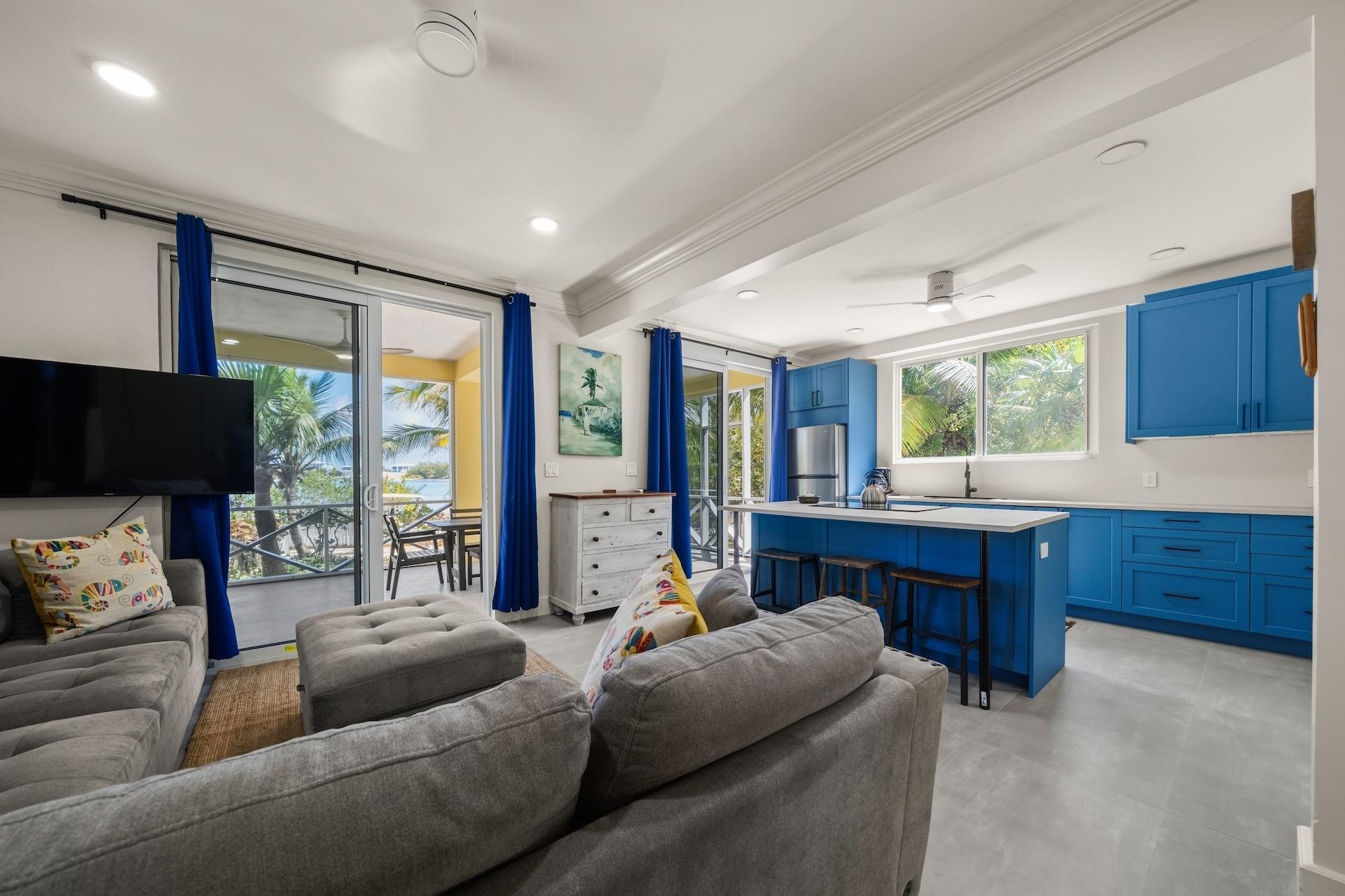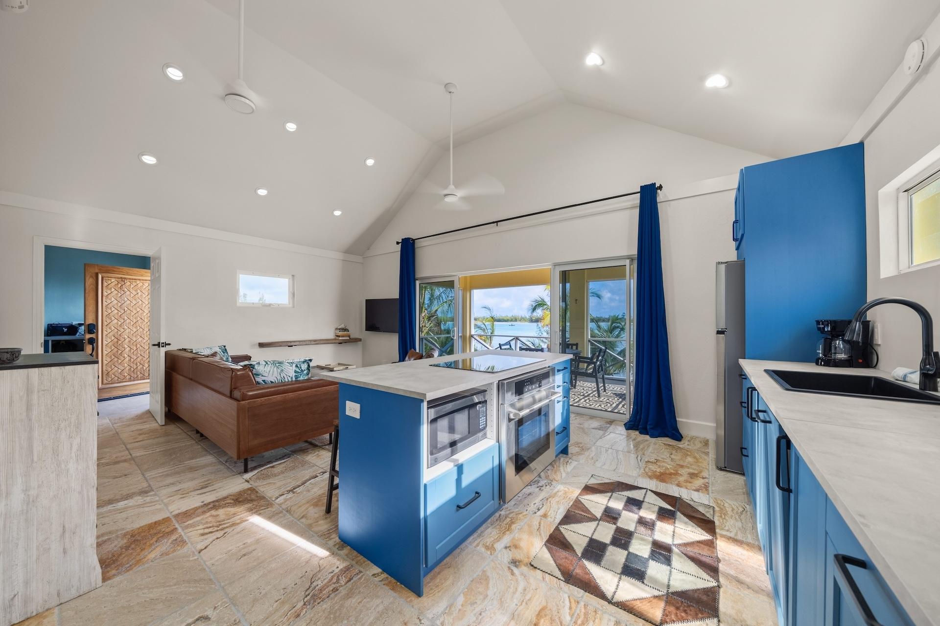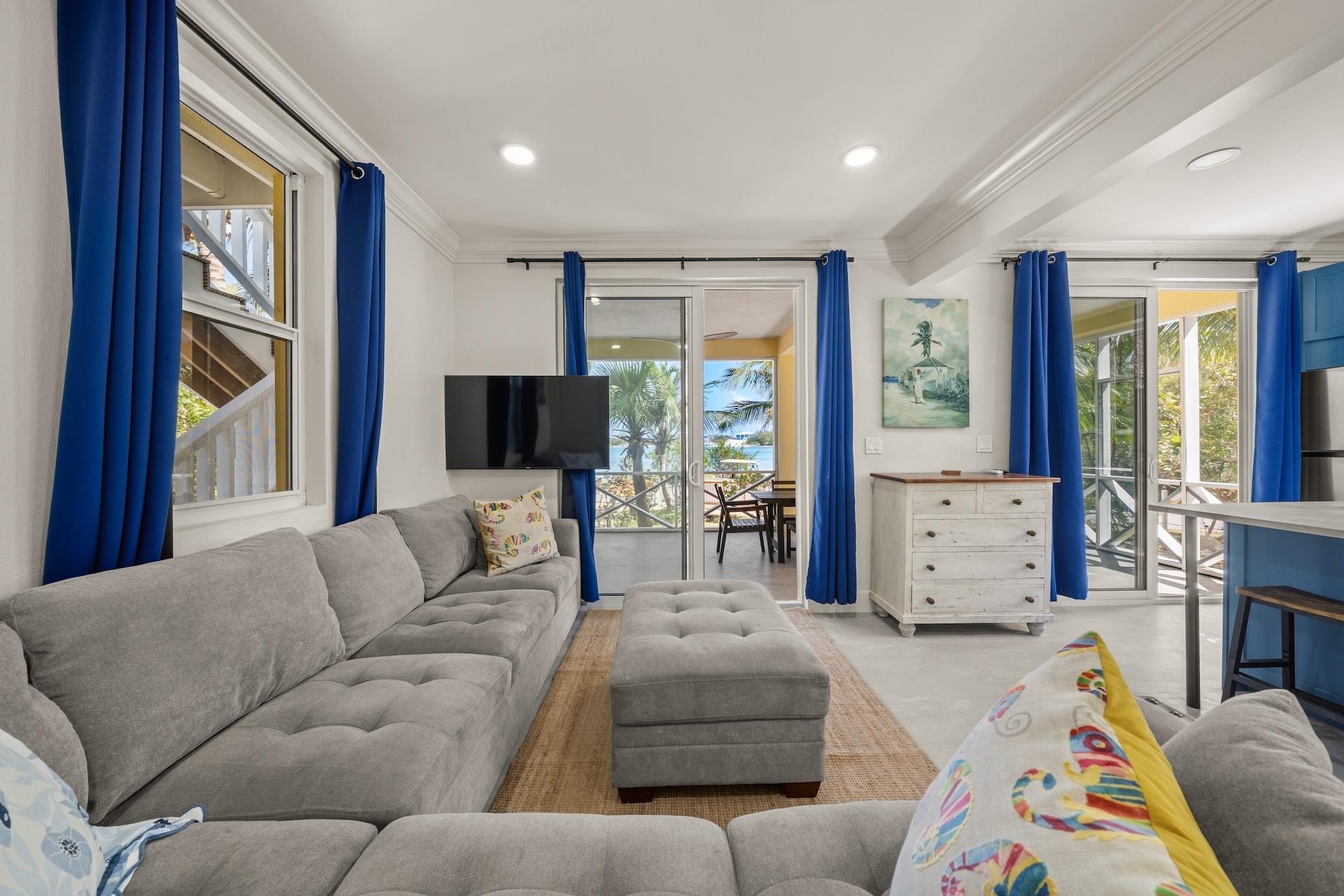Lo-Key Villa offers beachfront living in coveted Coco Bay, Green Turtle Cay. A solidly constructed concrete two-story residence in one of Abaco’s most desirable waterfront locations. Featuring a metal roof and high-end impact windows and doors, the home offers strength and peace of mind. Newly completed designer renovations have elevated the interior, now showcasing bespoke finishes, minimalist perfection designed for modern living. Enhanced by curated fine art and coastal elegance, a well-appointed modern kitchen and spa-quality bathrooms. This turnkey coastal residence combines elevated island living, enduring strength, and quality craftsmanship. Each level offers a stylish two-bedroom, one-bathroom layout with vaulted ceilings, abundant natural light, and seamless flow to the spacious covered screened-in veranda, perfect for indoor and outdoor entertaining. With an exceptionally strong rental history, the home offers proven income performance and an attractive return on your investment. Set on Coco Bay, one of the most sought-after locations, this is the ultimate beach-house.