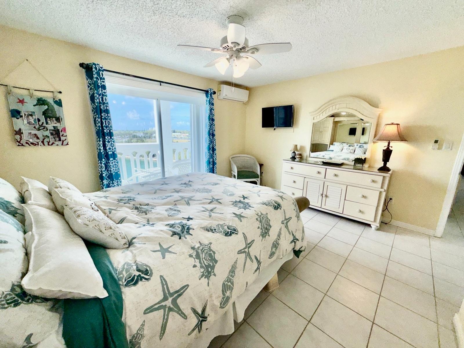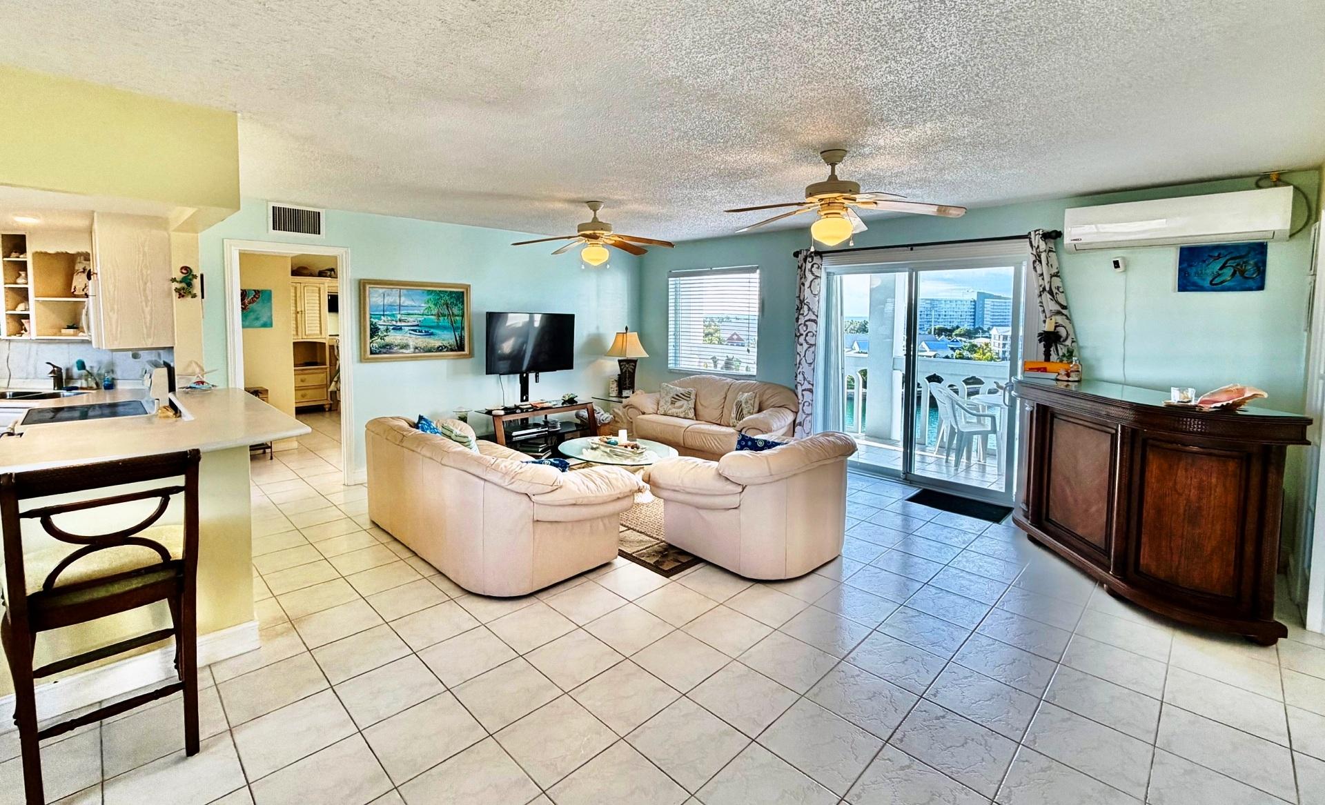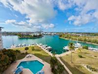 This fabulous 2-bedroom, 2-bathroom condo is located on the 8th floor of Harbour House Towers and offers stunning panoramic views of Port Lucaya Marina, Marketplace, and the turquoise ocean beyond. The open-concept living and dining area is tastefully furnished and flows seamlessly onto a spacious balcony, ideal for relaxing or entertaining while enjoying breathtaking views of the marina and the ocean. The unit features two bedrooms, including a master bedroom and a second bedroom with a Murphy bed. The second bedroom can be opened up or closed off with doors, offering flexibility for use as a guest room or additional living space. This condo is turn-key and move-in ready, offering comfort and convenience in one of Lucaya’s most desirable locations. Residents of Harbour House Towers enjoy excellent amenities, including a large pool, boat dockage, 24-hour gated security, and an on-site gym. The property overlooks Bell Channel Bay and Port Lucaya Marina, with beautifully landscaped grounds and a peaceful waterfront setting.