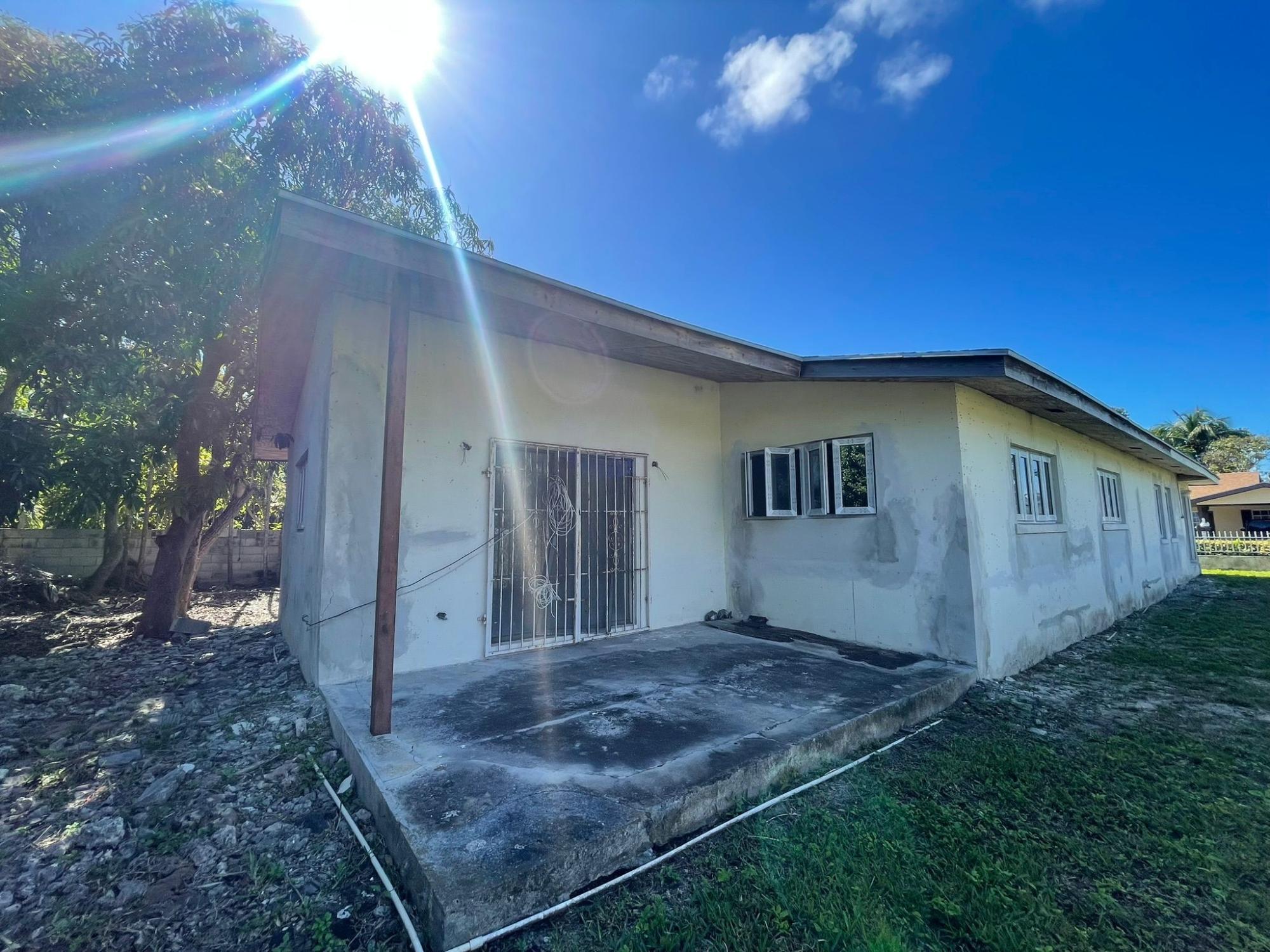 This charming 3-bedroom, 2-bathroom Bahamian-style home in the heart of Golden Gates, Carmichael, is a fantastic opportunity for families, developers, and pet owners alike. Built with solid concrete block, finished concrete exterior, and ceramic tile flooring throughout, the property sits on a level, fully walled lot with a private yard and covered porch. Enjoy the convenience of exterior laundry, a carport, city water, and easy access to shopping and recreation. Currently vacant and awaiting your personal touch, this property is primed and ready to be outfitted to your exact taste and vision.